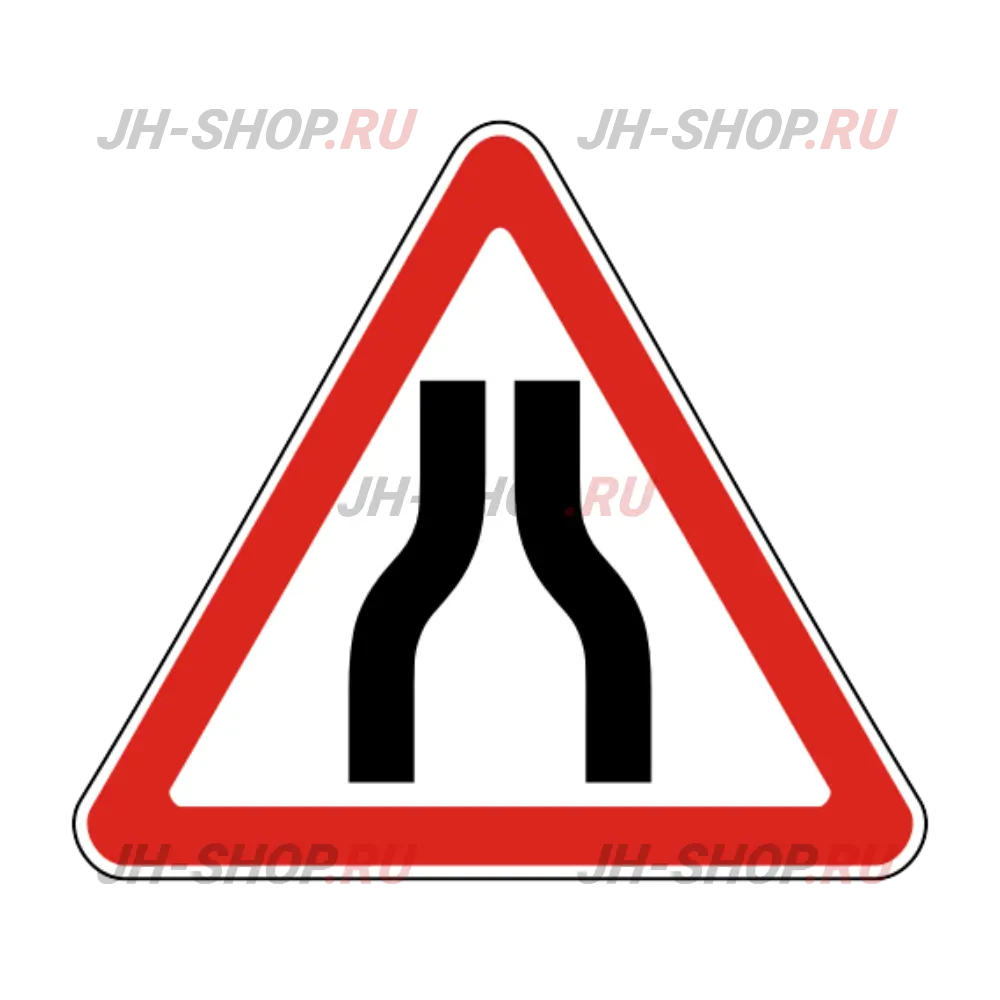 Знак устанавливают вне населенных пунктов перед участками дорог, на которых ширина проезжей части уменьшается более чем на 0,5 м, а в населенных пунктах - на одну полосу или более. Вне населенных пунктов знак устанавливают также перед мостовыми сооружениями и тоннелями, если ширина проезжей части в пределах искусственного сооружения равна или меньше, чем на подходах к нему, а в населенных пунктах - меньше, чем на подходах к нему.