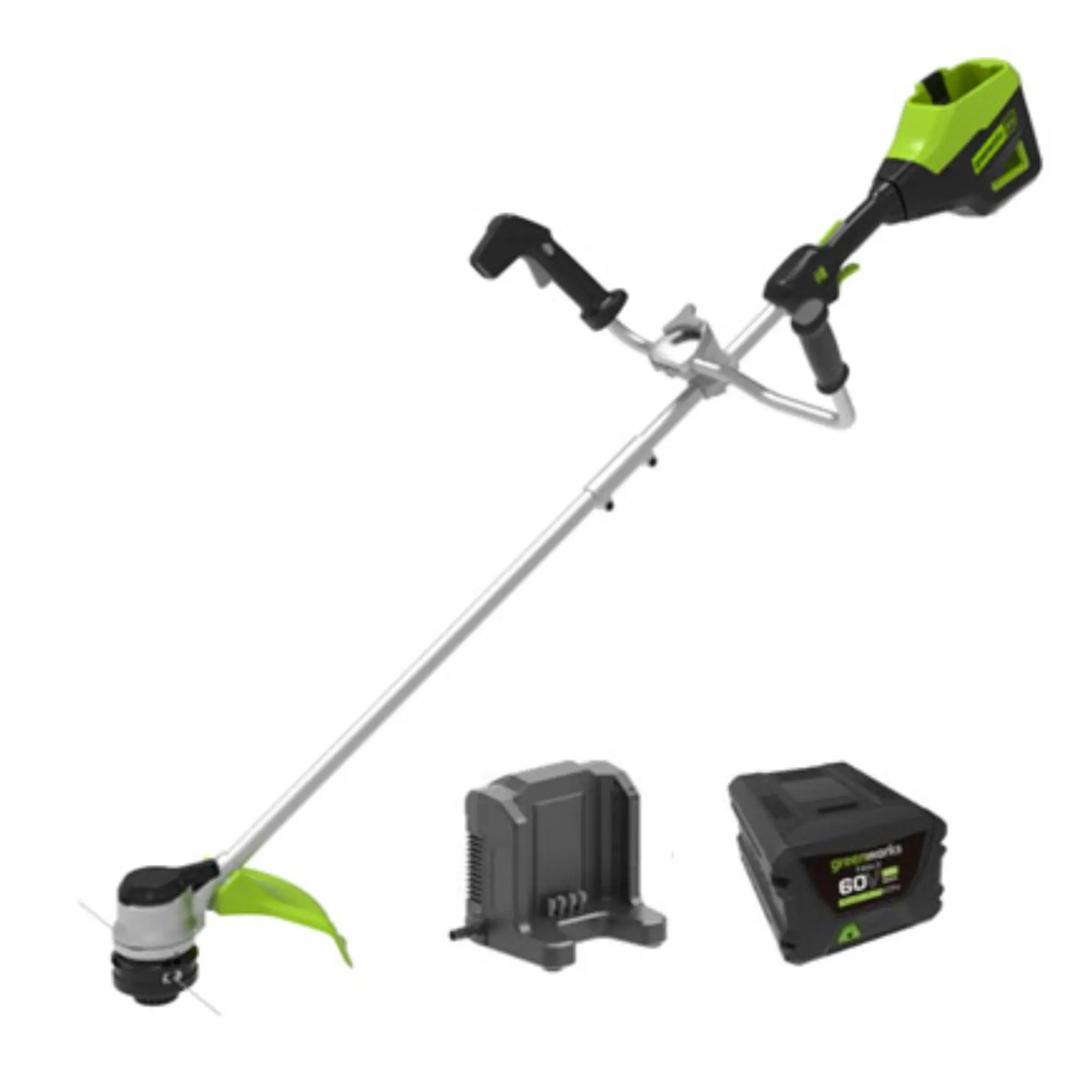Триммер работает от аккумуляторной батареи 60V, которая применяется и совместима со всеми устройствами из линейки 60V.