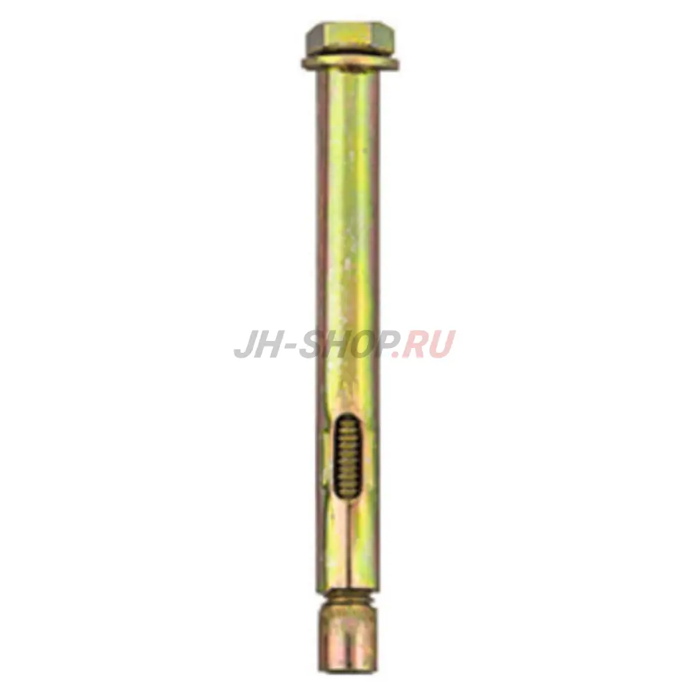 Анкерный болт состоит из стальной гильзы, болта и распорной конусной части. В распорной части анкера есть надрезы, обеспечивающие раскрывание при монтаже. Снаружи болт покрыт желтым цинком для предотвращения коррозии.