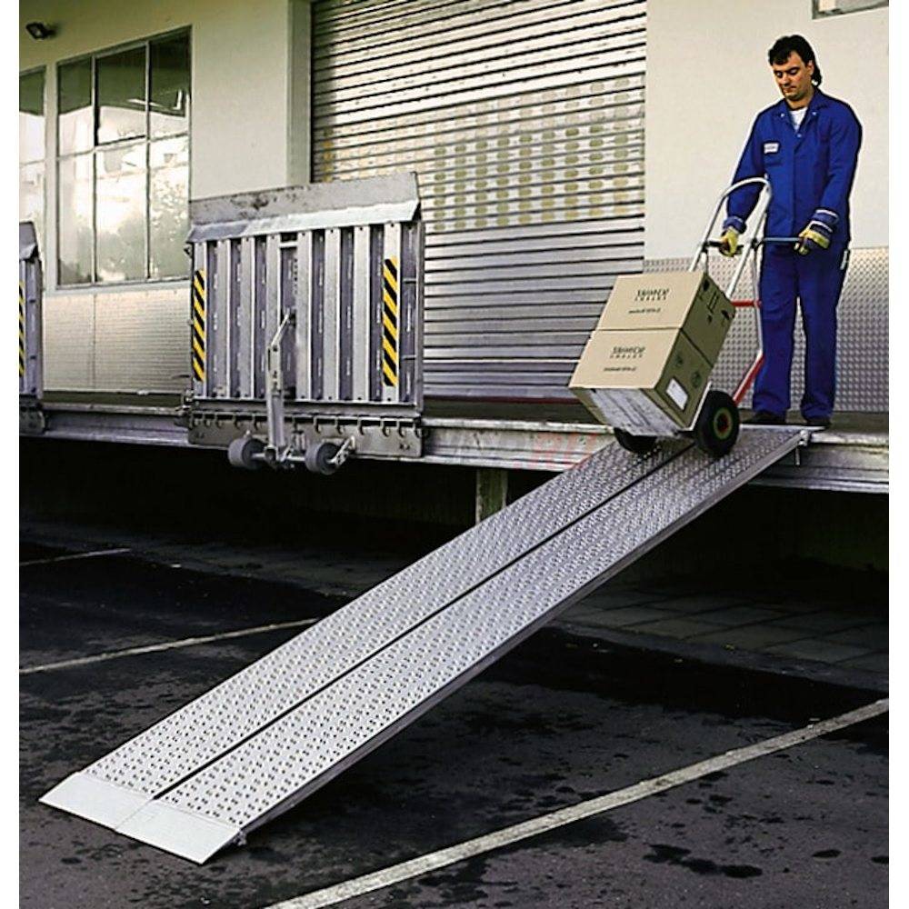 Въездные рампы типа AOS предназначены для разгрузки транспортных тележек с маленькими колесами, ручных подъемников с незначительным клиренсом или тележек на пневматиках. Стандартно все въездные рампы защищены от скольжения.