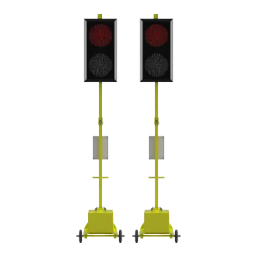 Временные транспортные светофоры ДУОС ХРОНО используются для регулировки движения автомобилей по реверсивной полосе. За счет складной конструкции их можно быстро установить на нужных участках без использования проводов и кабелей.