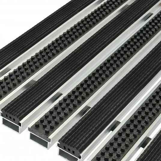 Грязезащитная система состоит из алюминиевой решетки со скребками и вставок из текстиля или резины. Изделие служит для очистки обуви от грязи и пыли. Сокращает риск падения на скользких мраморных, гранитных, бетонных покрытиях в осенне-зимний период. Все изделия имеют межпрофильные вставки из резины, которые также выполняют роль амортизирующих элементов, что значительно снижает шумы и скольжение изделия при прохождении посетителей.