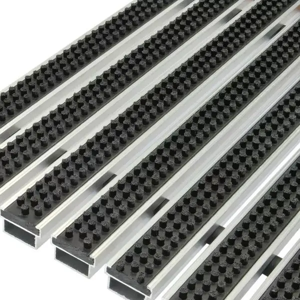 Грязезащитная система состоит из алюминиевой решетки со скребками и вставок из текстиля или резины. Изделие служит для очистки обуви от грязи и пыли. Сокращает риск падения на скользких мраморных, гранитных, бетонных покрытиях в осенне-зимний период. Все изделия имеют межпрофильные вставки из резины, которые также выполняют роль амортизирующих элементов, что значительно снижает шумы и скольжение изделия при прохождении посетителей.