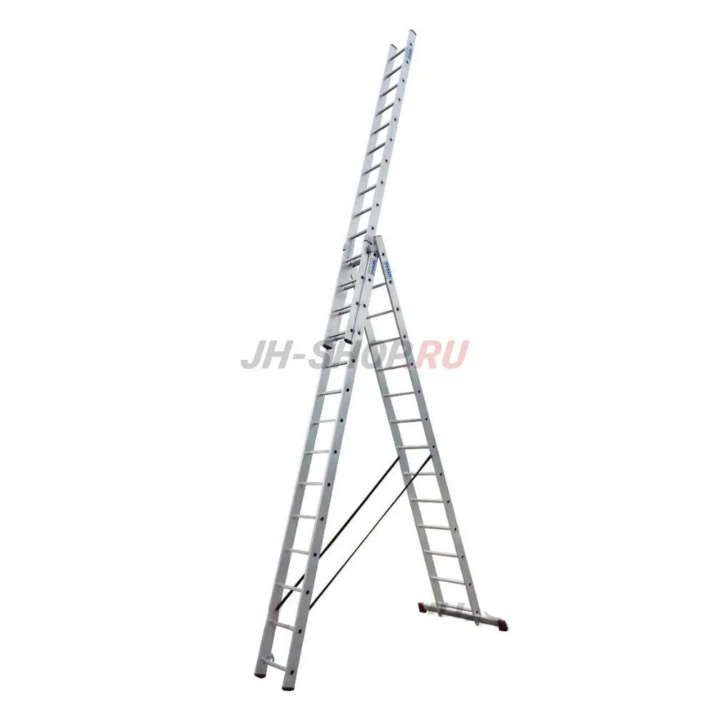 - Алюминиевая трехсекционная лестница с перекладинами, универсального применения: может использоваться как приставная и выдвижная лестница или как стремянка