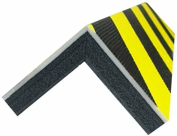 Демпфер мягкий угловой самоклеящийся. Предотвращает механические повреждения кузова автомобиля при столкновениях с углами колонн и стен. Улучшает навигацию. Обозначает препятствия и направление движения. Маскирует дефекты и неровности. Быстрый и простой монтаж. Клеевой слой обеспечивает надёжное соединение с поверхностью из монолитного бетона, пеноблока, кирпича, металла. Двухслойная сигнальная плёнка (краска находится между слоями), предотвращает перенос краски на поверхность автомобиля при контакте. Снижает расходы на обновление паркинга (при ударах о колонну, сколы штукатурки или бетона происходят под матом, в следствии чего не нарушается внешний вид). Упругая структура материала позволяет ему восстанавливаться при нагрузках. Легко режется канцелярским ножом. При монтаже в развёрнутом виде возможно использовать как кабель канал. В сравнении с резиновыми отбойниками, защищает автомобили, а не стены.