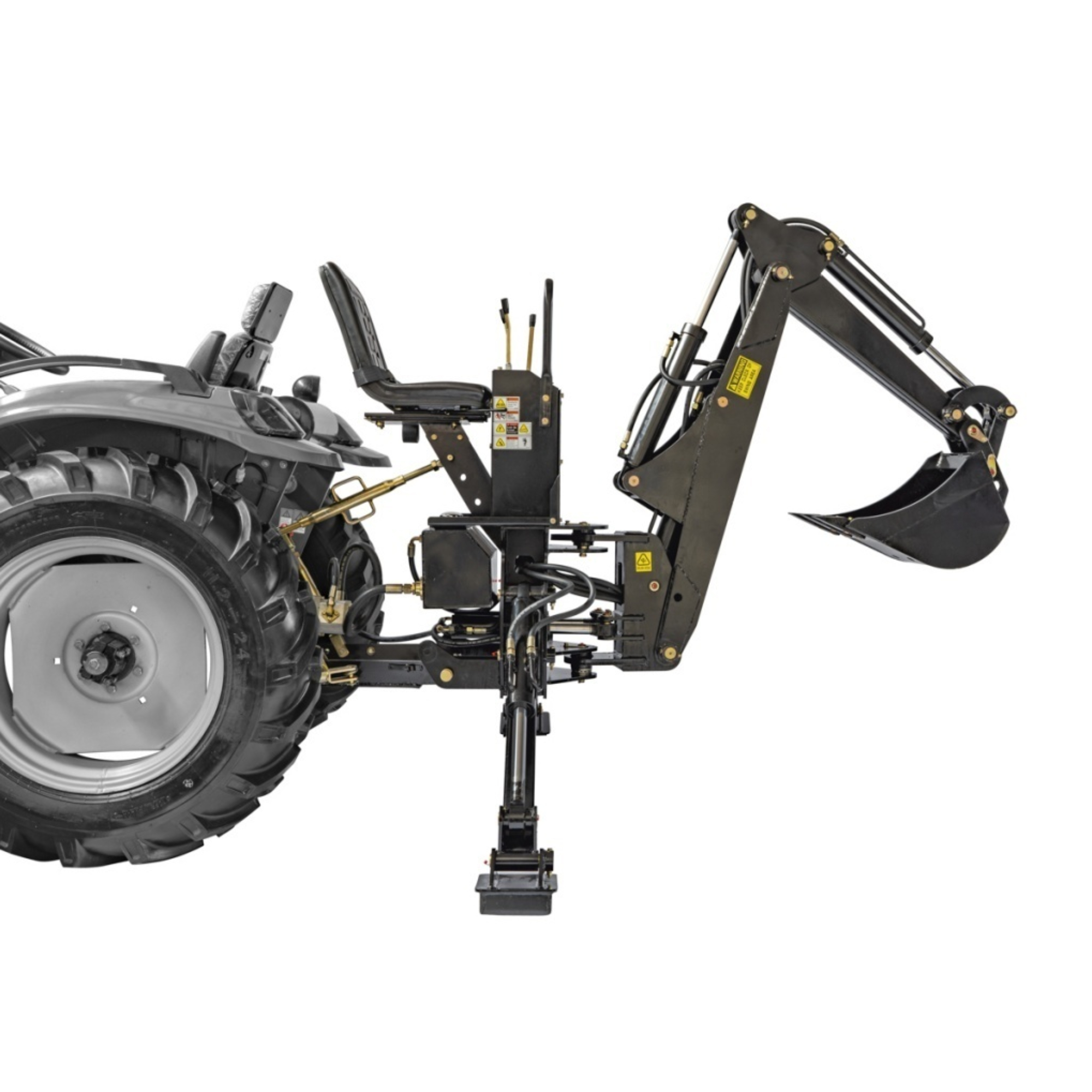 Установка оборудована собственной гидросистемой: гидравлический насос, масляной бак, манометр, ручной и перепускной клапаны. Она приводится в действие валом отбора мощности трактора 540 об/мин. Рабочее место расположено на экскаваторе. Также он оснащён опорными стойками.