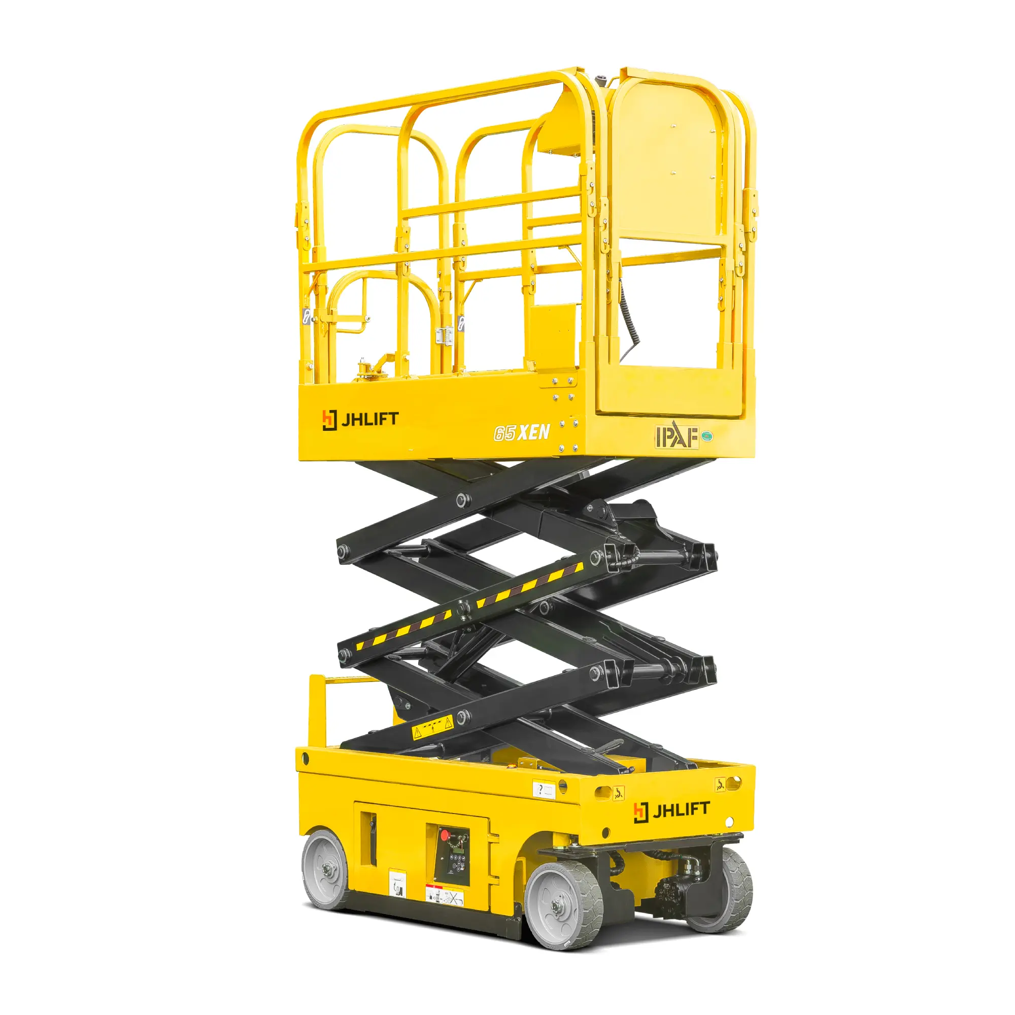 Ножничный подъемник JHLIFT 65XEN предназначен на выполнении ремонтных, строительно-монтажных и других работ на высоте до 6500 мм. Подъемник рассчитан на эксплуатацию в отапливаемых помещениях. Управление всеми функциями — подъемом и опусканием платформы, рулением, перемещением вперед и назад — осуществляется оператором на платформе.