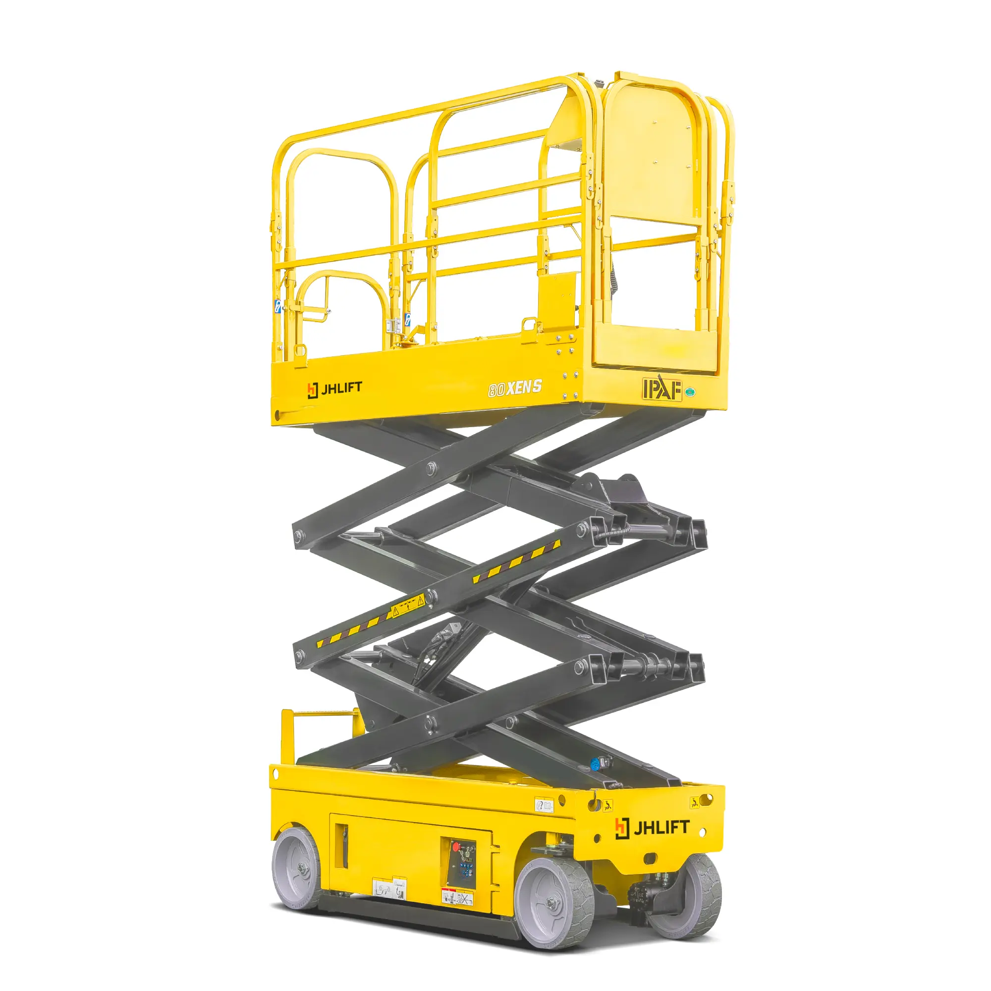 Ножничный подъемник JHLIFT 80XENS предназначен на выполнении ремонтных, строительно-монтажных и других работ на высоте до 8000 мм. Подъемник рассчитан на эксплуатацию в отапливаемых помещениях. Управление всеми функциями — подъемом и опусканием платформы, рулением, перемещением вперед и назад — осуществляется оператором на платформе.