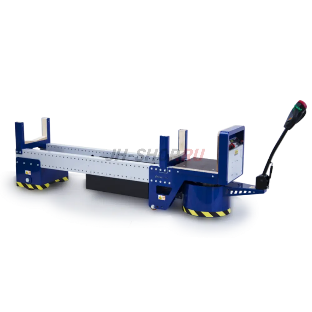 Zallys M8 – поводковая электрическая тележка создана для безопасной эксплуатации, оставаясь при этом быстрой и маневренной даже в узком пространстве. Оборудована рулем и колесом с электроприводом, способным разворачиваться на 320°, что позволяет перевозить крупногабаритные грузы, особенно длинные, например, балки или трубы длиной до 6 м. Благодаря чрезвычайно высокой маневренности, наличию переднего колеса с электроприводом, тележка может с невероятной легкостью перевозить тяжелые грузы к пункту назначения или операционной станции, например, линии с ЧПУ.