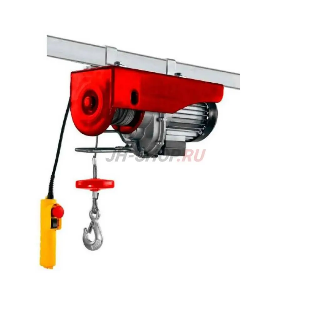Благодаря 18-метровому тросу с защитой от перекручивания (Ø 6 мм), груз массой 300 кг может быть поднят на высоту 18 метров без использования возвратного шкива (с возвратным шкивом: 600 кг / 9 метров). Мощный двигатель 1050 Вт обеспечивает скорость подъема в 4 или 8 метров в минуту. Оснащение двигателя термостатическим выключателем обеспечивает его длительный срок службы. Благодаря двум стальным скобам тельфер легко монтируется.