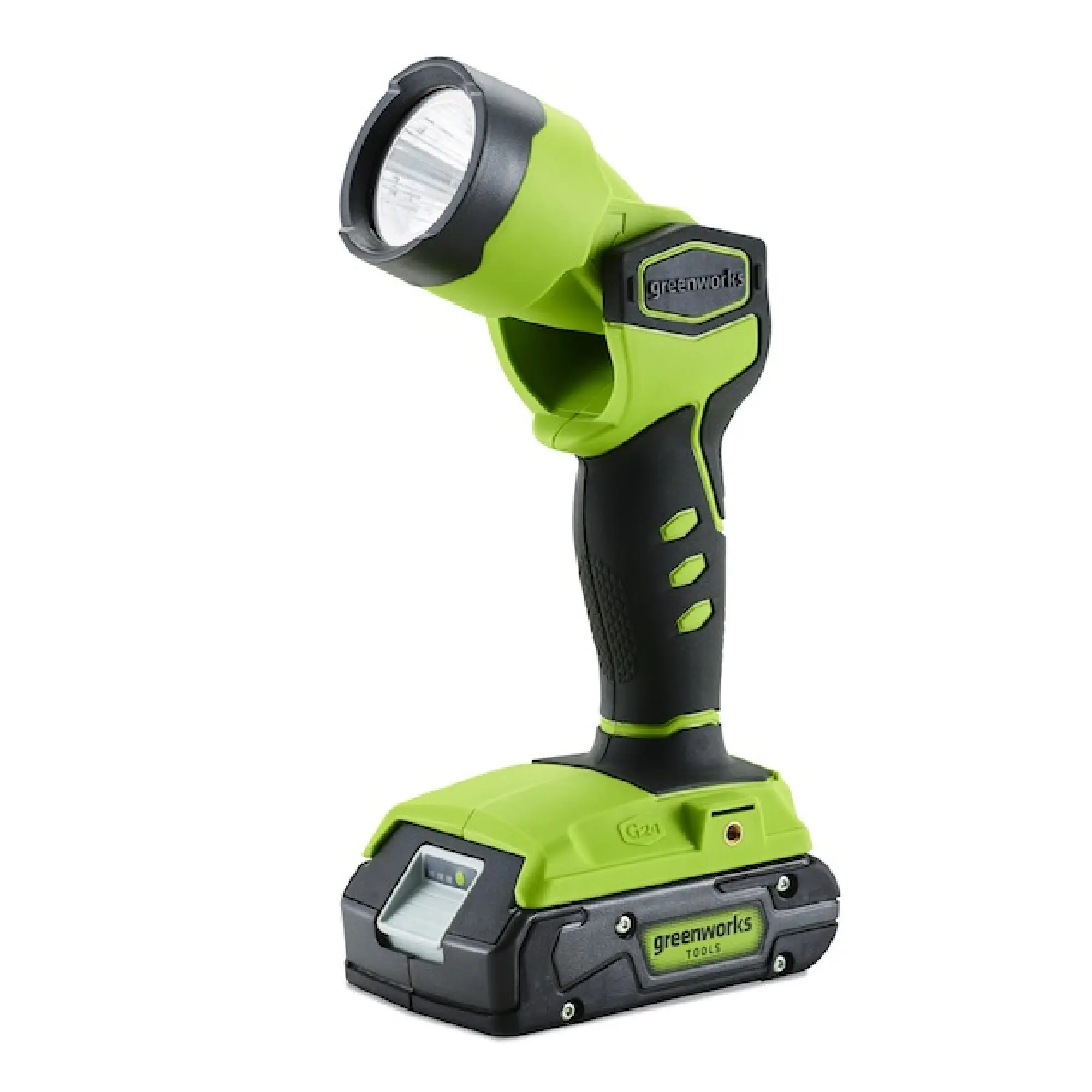 Фонарь аккумуляторный Greenworks 24V (G24WL) — удобное решения для работы в местах с плохой освещенность, обычно применяется как фонарик для подсветки рабочей зоны, но так же может служить и обычным фонариком, который можно взять с собой на природу, в поход или положить в автомобиль «на всякий случай». А так же пригодится в домашнем хозяйстве, особенно тем, кто уже имеет аккумулятор Greenworks 24V.
