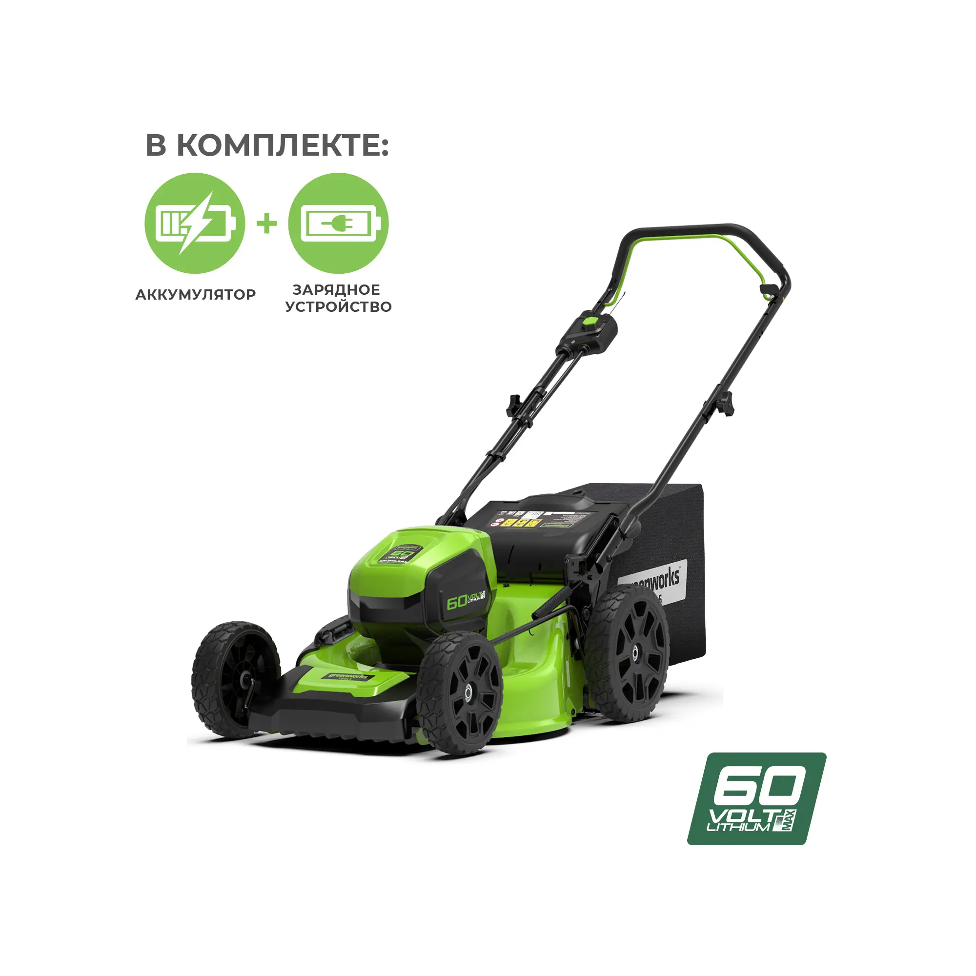 Газонокосилка аккумуляторная Greenworks GD60LM46HP 60V (46 см) с 4 А.ч АКБ и ЗУ