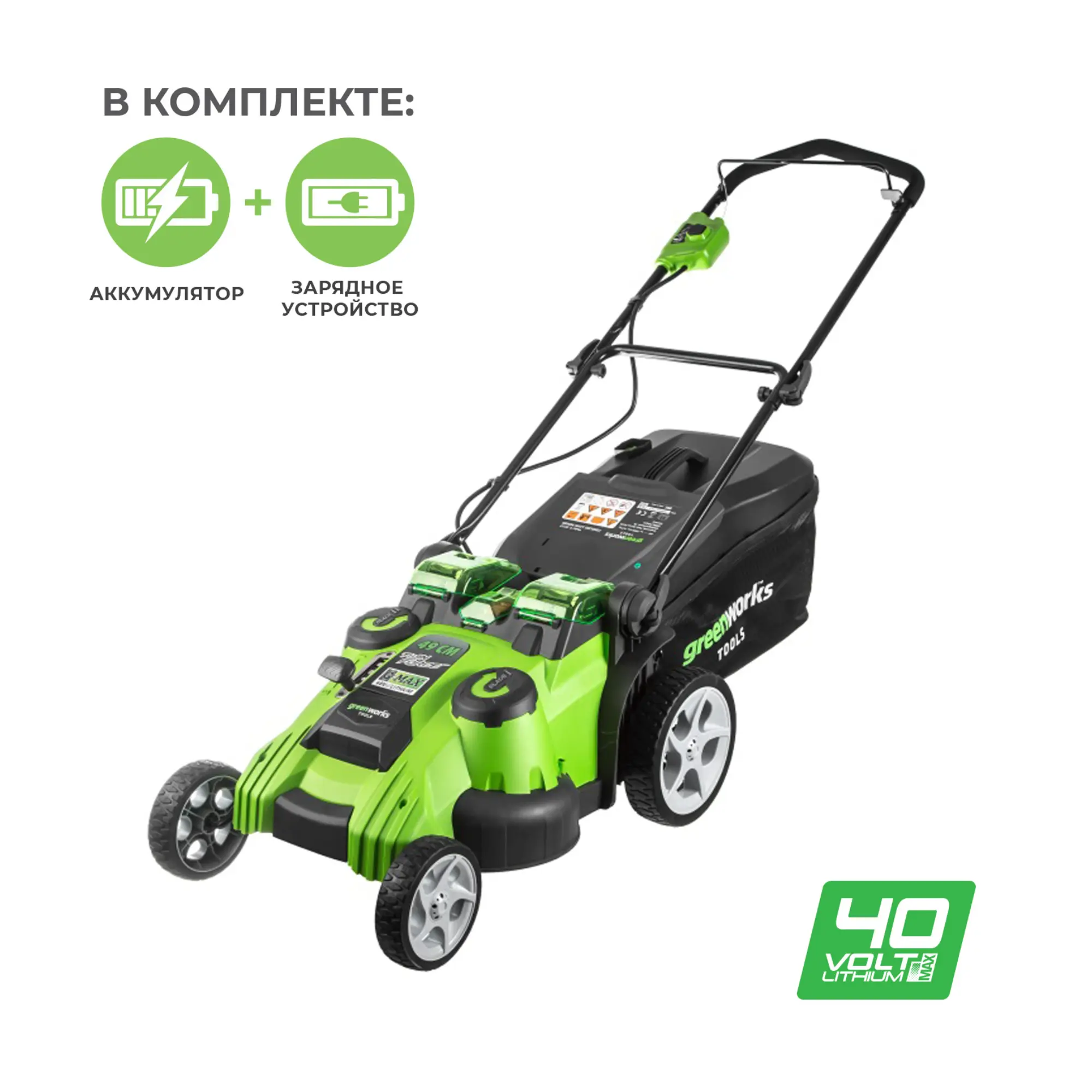 Газонокосилка Greenworks 40V (49 см) с АКБ 4 А/ч и ЗУ
