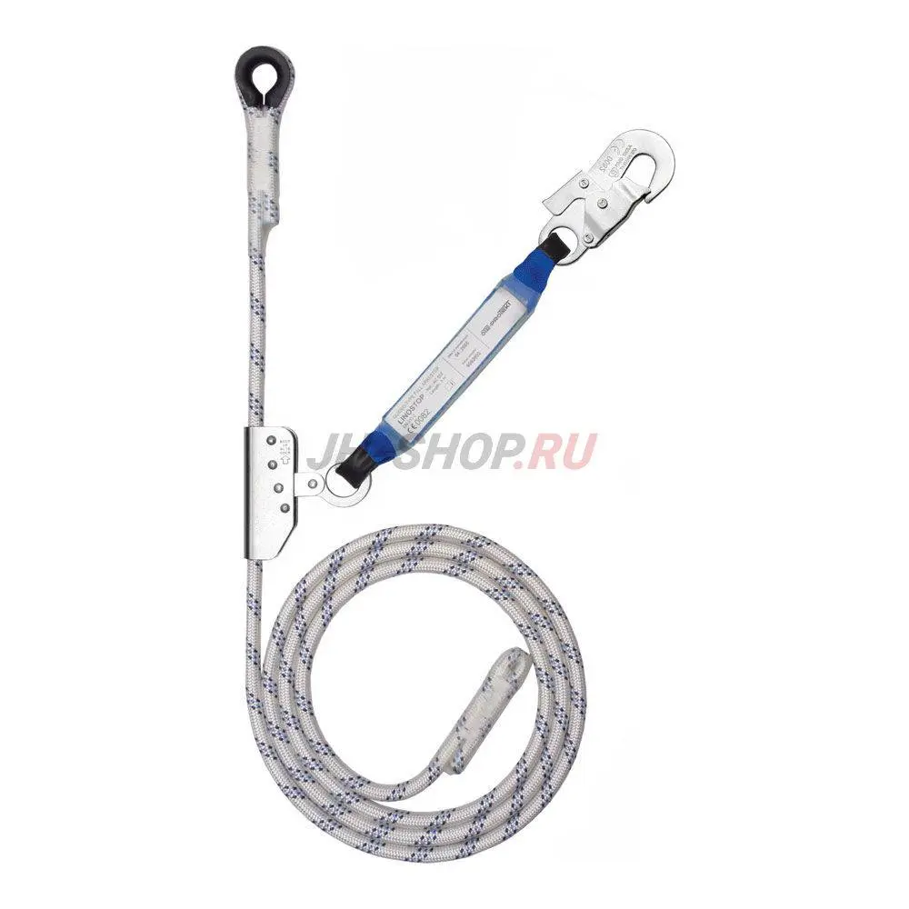Блокирующее устройство ползункового типа. Ползунковое устройство снабжено миниамортизатором. Используется в комплекте с тросом, имеющим индикатор изнашивания, Х 12 мм. Длина троса: 20 м. Работает в автоматическом режиме. Для прокладки высотных магистралей, для продолжительных работ на высоте.