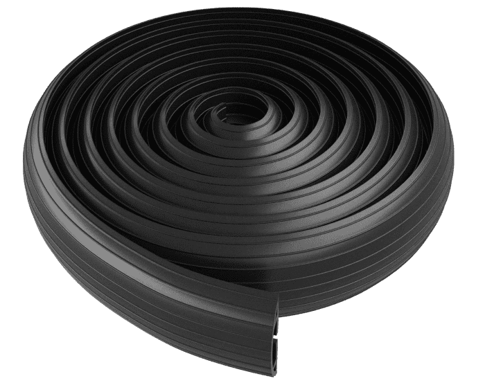Эластичное изделие из резины. С верхней стороны имеет протектор для предотвращения проскальзывания колес. С нижней стороны - желоб для прокладки кабеля. Длина кабель-канала 9 метров. Регулировка длины кабель-канала возможна с помощью ножниц или ножа.