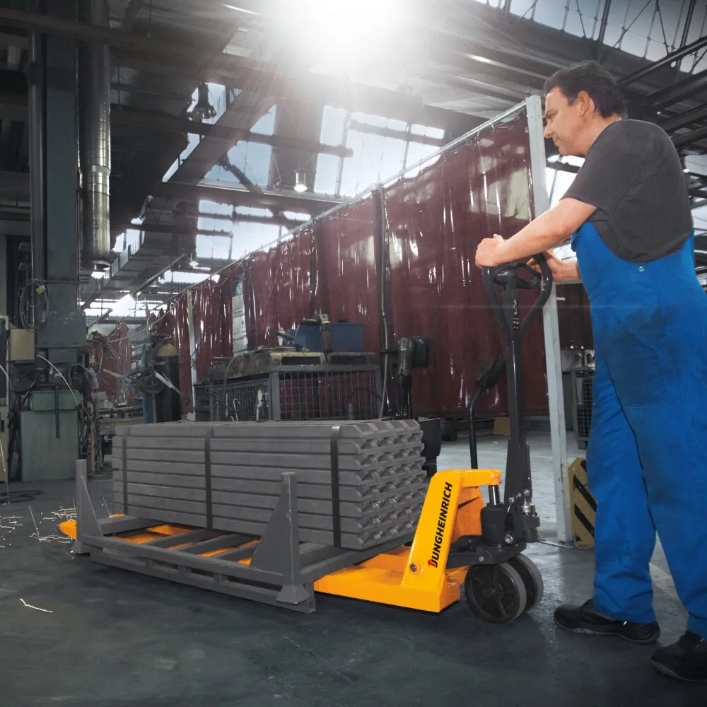 - Грузоподъемность варьируется в среднем от 1500 кг до 3000 кг. Возможно исполнение и с большей грузоподъемностью. Самой востребованной моделью является тележка с грузоподъемностью 2500 кг. В случае, если вес груза превышает 1000 кг, рекомендуем использовать тележки с электроприводом, т.к. они значительно ускоряют процессы на складе (Подробнее можете ознакомиться на нашем канале в Яндекс Дзен Юнгхайнрих | Jungheinrich | Устроили гонки рохли и электротележки с грузом на 10 метров. Сколько секунд разница? (dzen.ru)).