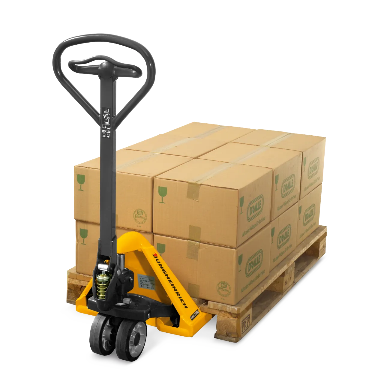 Вес зависит от конкретной модели. На этот показатель влияет длина вил и толщина металла. Например, вес у гидравлической тележки Jungheinrich AM 22 с длиной вил 1150 мм и грузоподъемностью 2200 кг составляет 63 кг.