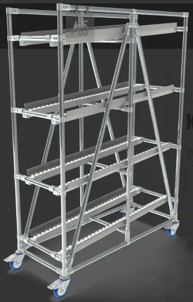 Стеллаж состоит из вертикального каркаса, выполненного из нержавеющей трубы диаметром 28 мм, на котором располагаются полки или уровни с роликовыми дорожками. Роликовые дорожки располагаются под углом, что обеспечивает движение ящиков благодаря силе тяжести. Поскольку товары для упаковки или отгрузки перемещаются автоматически под действием тяжести, работники могут быстрее обрабатывать заказы, не тратя время на манипуляции с грузами. Гравитационные стеллажи позволяют максимально использовать вертикальное пространство склада. Это особенно полезно в условиях ограниченной площади.