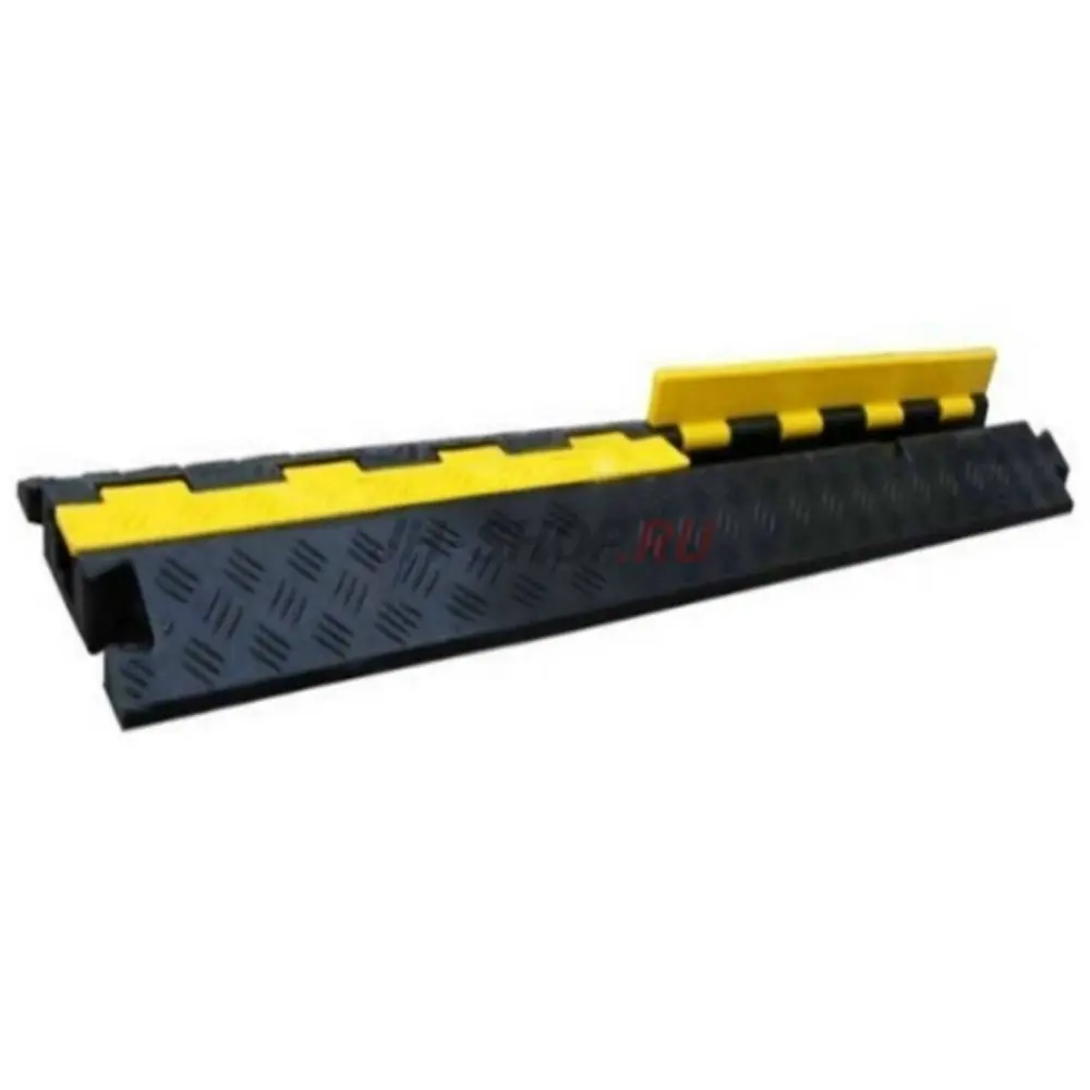 Формовое изделие из резины. Сверху – откидывающаяся крышка из эластичного пластика. Всё изделие покрыто неровностями, для большего препятствия скольжению. На концах предусмотрены соединители типа «пазл». Необходимая длина кабель-канала набирается путем соединения нужного количества элементов.