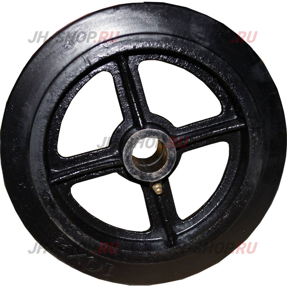 Колесо с литой резиной и чугунным ободом