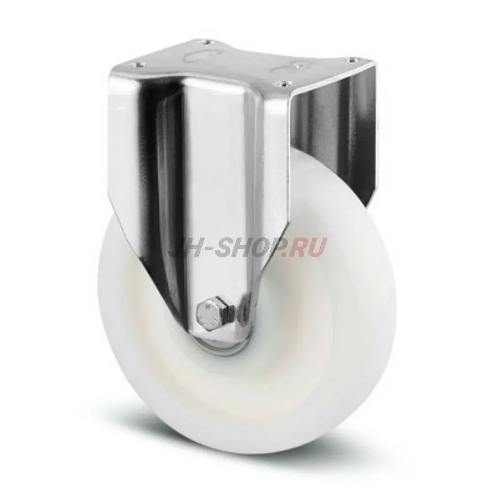Неповоротный ролик, Вилка изготовлена из прочной прессованной стали, усиленная, блестящее оцинкованное пассивированное голубым покрытие, ось колеса на болту, крепежная панель.