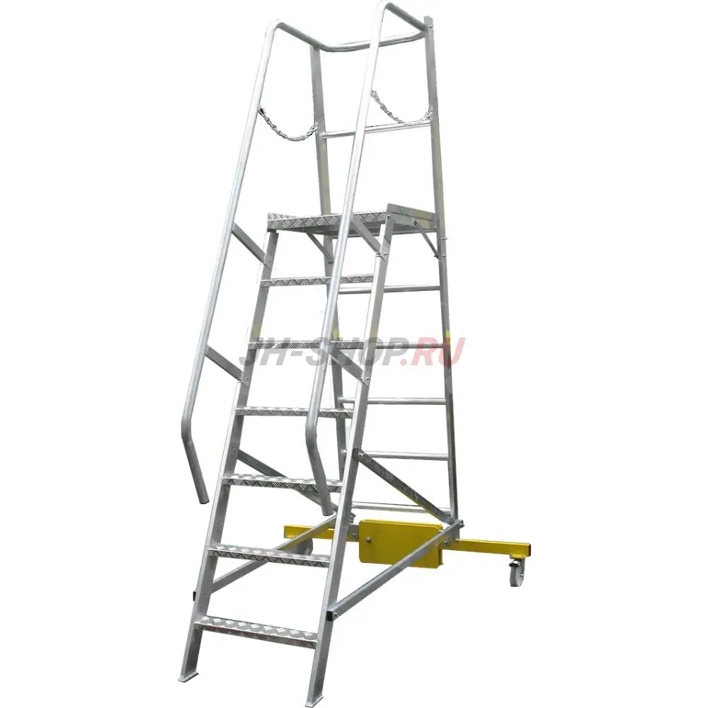 Передвижная лестница с платформой оснащена системой балластировки.