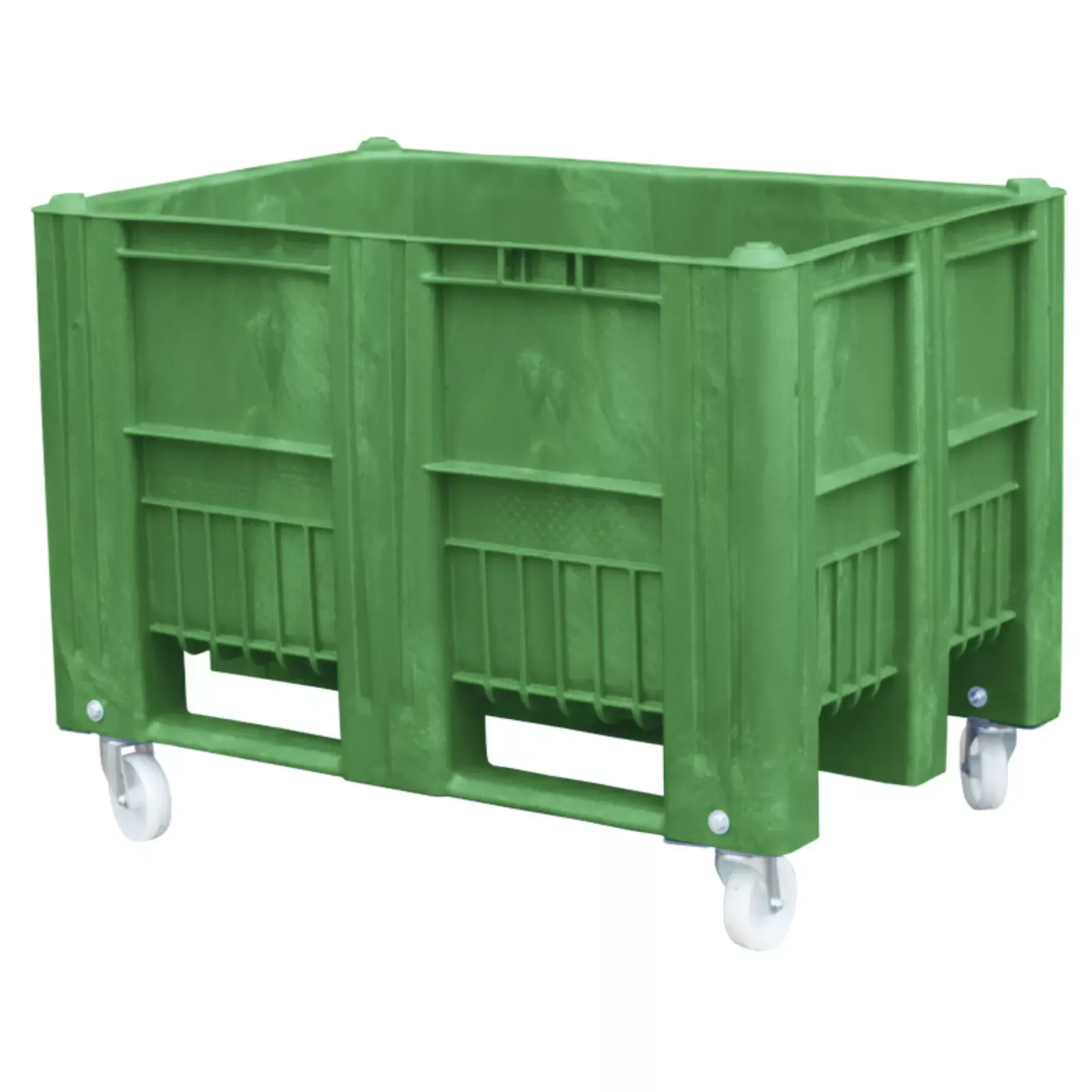 Биг бокс на колёсах позволяет перемещать контейнер внутри производственных помещений без помощи спецтехники. Колёса съёмные и не препятствуют штабелированию боксов в сеты. Диапазон рабочих температур от -40°С до +60°С.