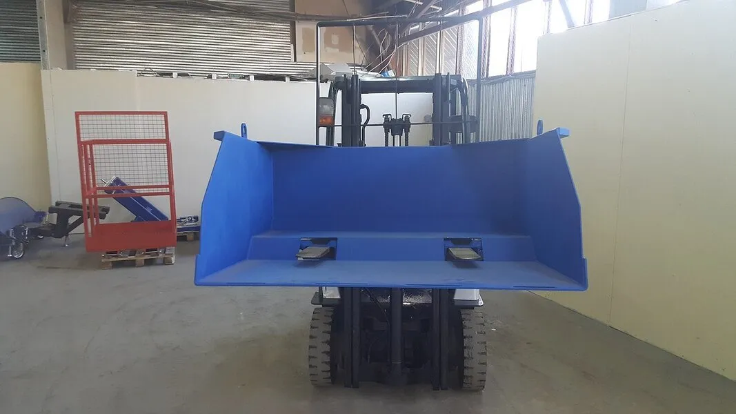 Данный вид оборудования применяется для транспортировки сыпучих грузов, таких как песок, зерно, снег, мусор и т.д. Не используется для проведения земляных работ. Ковш для погрузчика устанавливается на вилы погрузчика. Подъем и опрокидывание осуществляется посредством расцепления механического замка. Ковш для вилочного погрузчика может быть оборудован механическим приводом и устанавливаться на вилы погрузчика.