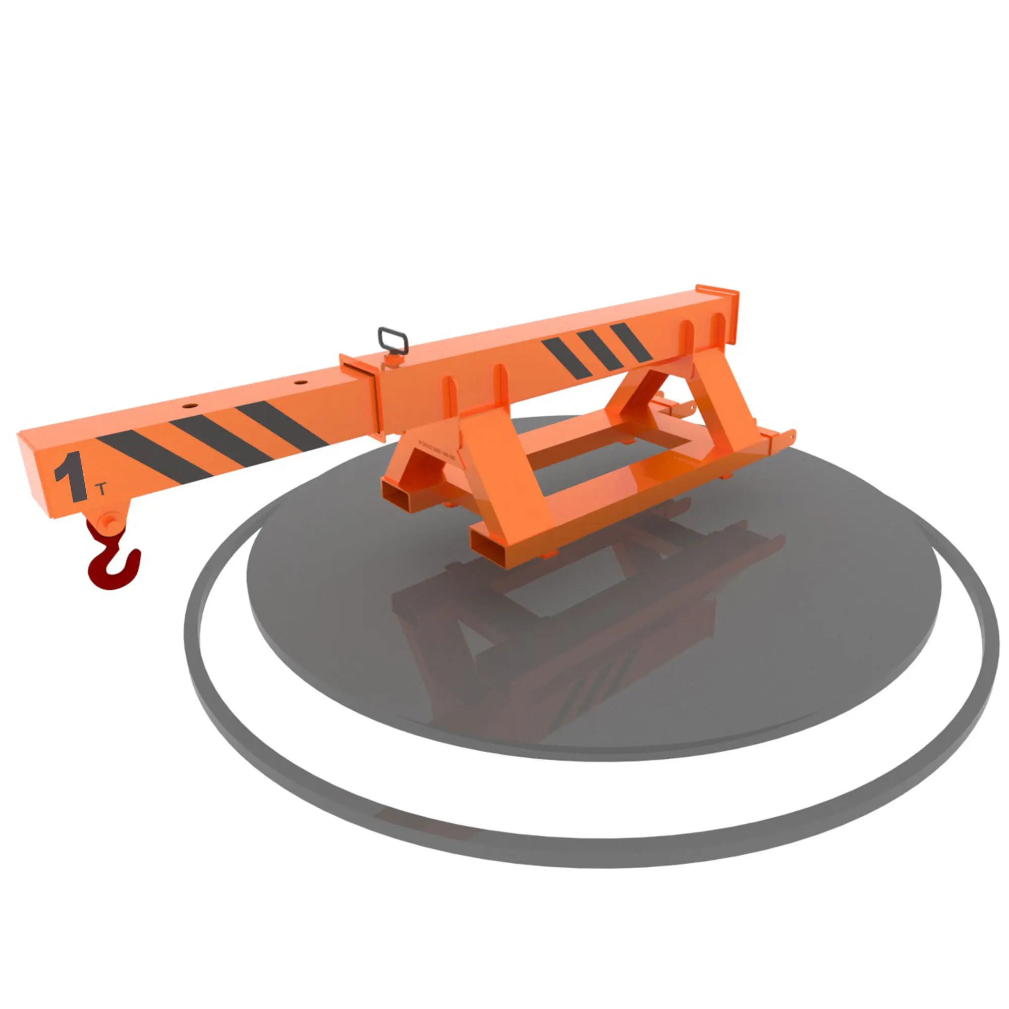 Навесная кран-балка широко применяется при работе с грузами, захват которых нужно производить сверху или с помощью крюка. Как правило, это биг-бэги, которые трудно подцепить вилами. Производимые нами крановые стрелы можно разделить по типу рабочего механизма (монолитные или телескопические) и по способу крепления на погрузчик (на каретку или на вилы). Все конструкции оснащены поворотным крюком. При работе с кран-балками нужно не забывать об аккуратности и мерах безопасности: не раскачивайте груз; не превышайте предельную грузоподъемность погрузчика в соответствующей точке высоты (таблица предельных нагрузок предоставляется производителем для каждой модели погрузчика).