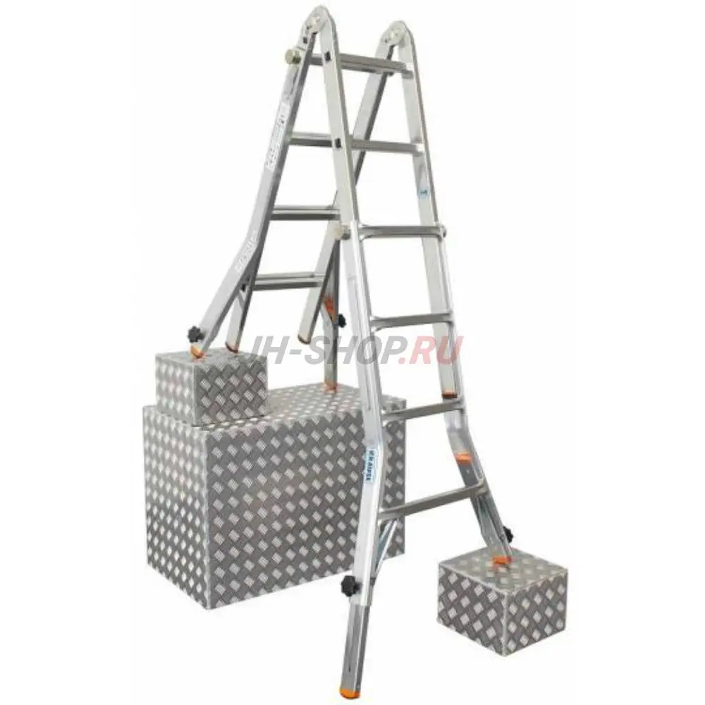 • Может применяться в качестве приставной лестницы, двухсторонней стремянки и рабочей платформы