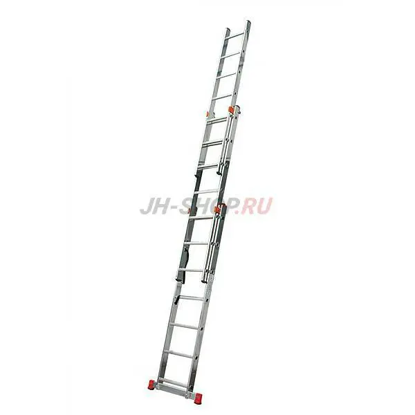 • Трехсекционная алюминиевая лестница, может применяться в качестве приставной / раздвижной лестницы, а также стремянки с выдвижной секцией.