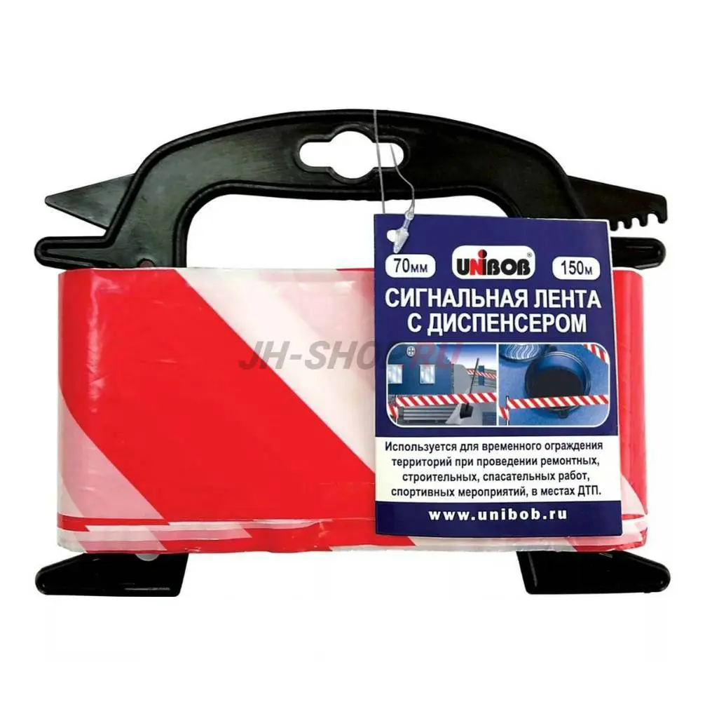Лента сигнальная UNIBOB 70мм х 150м, красно-белая с диспенсером