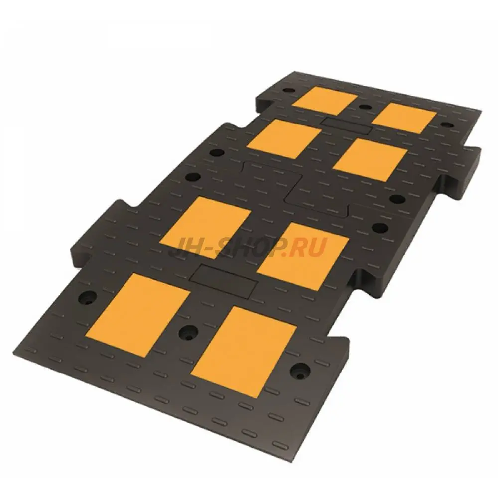 Искусственная дорожная неровность ИДН-1100-1 изготовлена из композита. На наружной поверхности элементов имеются выступы для отличного сцепления с автомобильными шинами. Изделие выдерживает нагрузку в 30 тонн, и не требует дополнительного армирования для большей прочности.