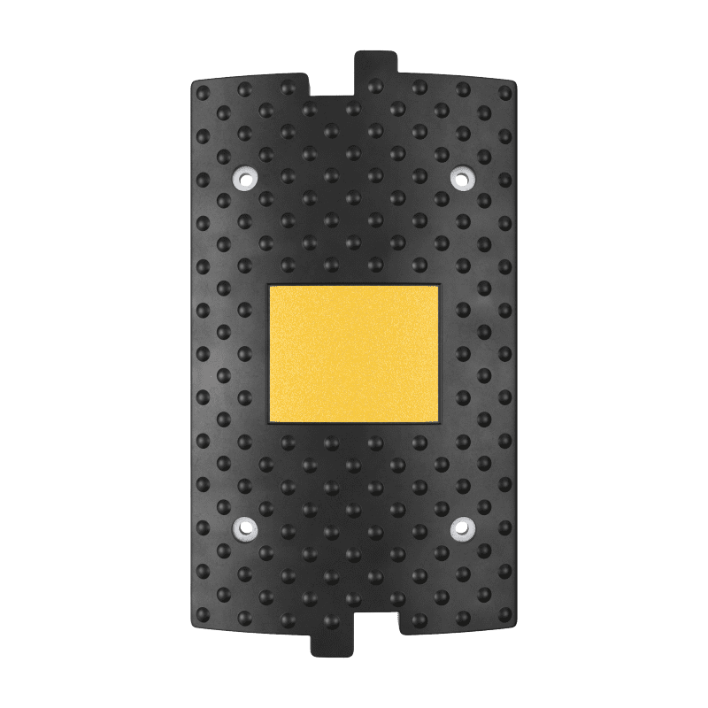 ИДН-300-1 основной элемент КОМПОЗИТ – искусственная дорожная неровность из прочной полимерно-песчаной смеси. За счет правильно подобранной рецептуры материала изделие не требует дополнительного армирования металлокордом и стальными дисками. Максимально допустимая нагрузка = 30 тонн. Поверхность ИДН-300 из композита обеспечивает коэффициент сцепления согласно требованиям ГОСТ Р 50597. На верхней части есть выступы сферической формы, за счет которых обеспечивается надежное сцепление с автошинами. Изделие оснащено прямоугольными светоотражающими элементами, ориентированными по направлению движения автотранспорта, что соответствует требованиям ГОСТ Р 50597.