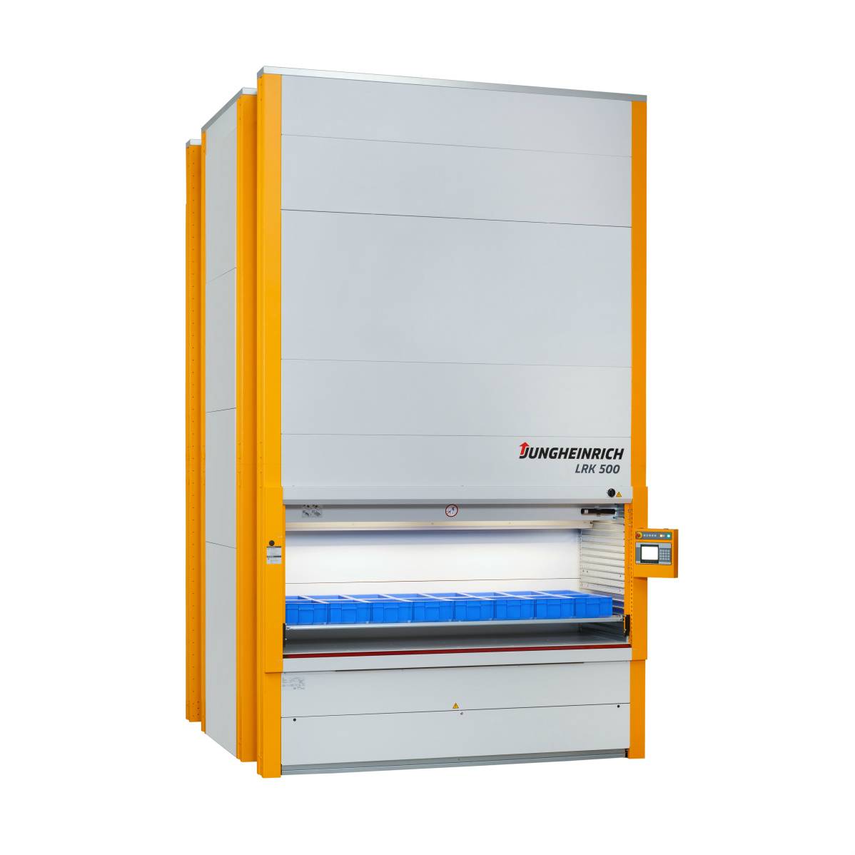 Лифтовый модуль Jungheinrich LRK – Это полностью закрытая система вертикально расположенных полок, позволяющая получить быстрый доступ к любой единице хранения. Товар по запросу оператора подается к окну выдачи всего за несколько секунд. В зависимости от высоты помещения использование LRK позволяет сохранить до 85% площади по сравнению с обычными стеллажами.
