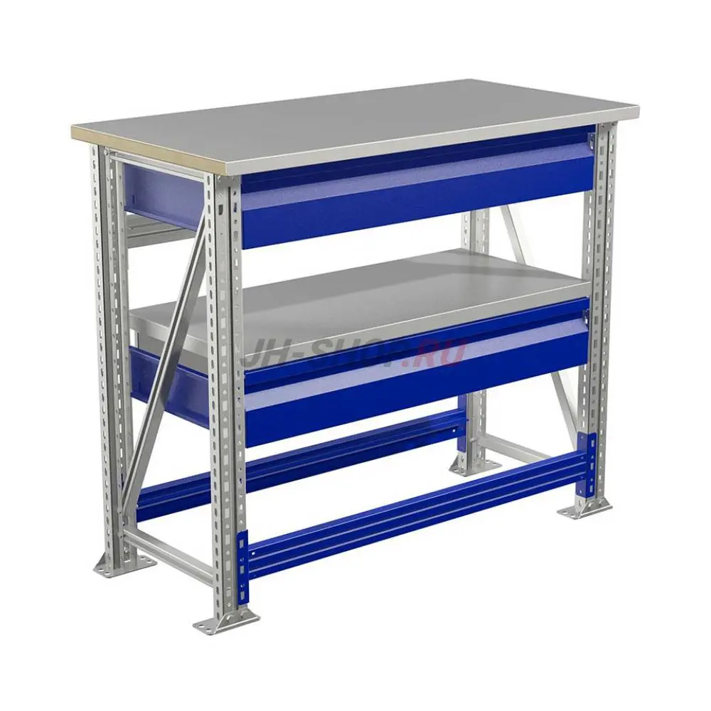 - Возможность дополнить верстак полкой (нагрузка 100 кг) и выдвижным ящиком (нагрузка 30 кг).