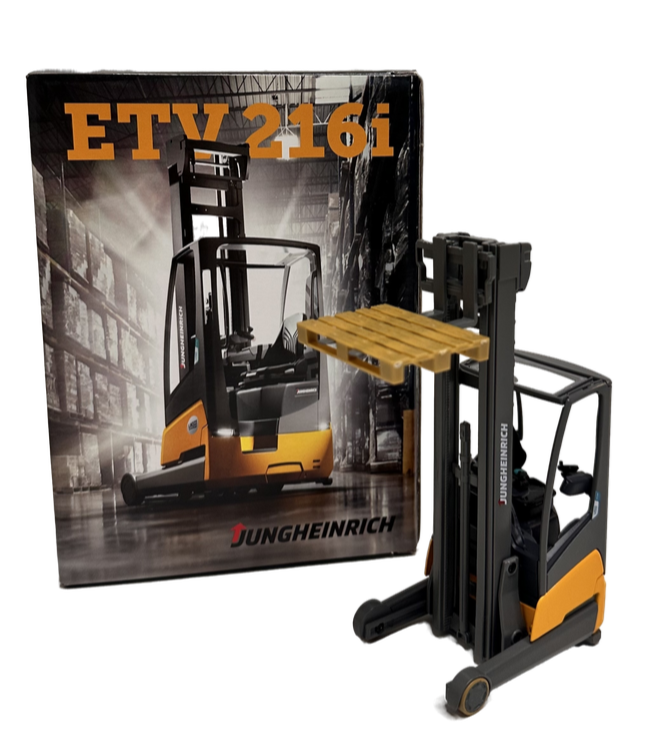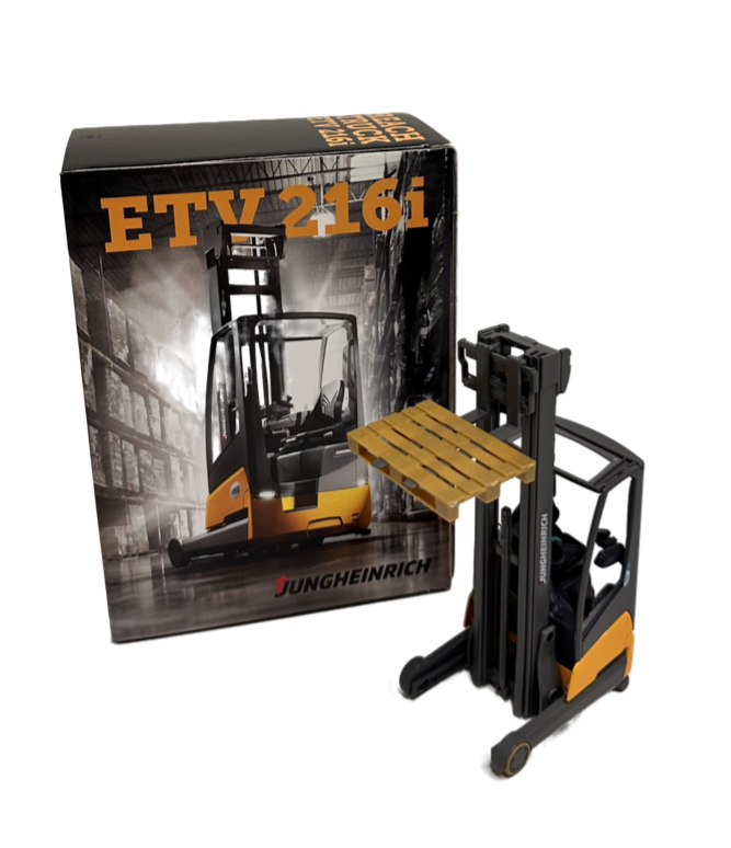 Модель ричтрака Jungheinrich 216i в масштабе 1:32. Высочайшее качество сборки и детализации, ручная покраска. Модель оснащена полностью функциональной мачтой.