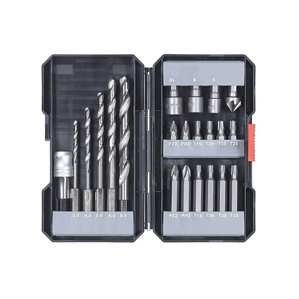Набор бит, сверл, головок KWB. Набор 22 предметами с 12 битами самых популярных размеров и форм: 6 бит 25 мм, 6 бит 50 мм, а также 5 сверл по металлу, 3 головки, 1 зенковка и 1 быстросменный держатель бит.