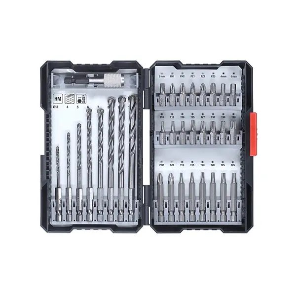 Набор бит, сверл, головок KWB. Набор 33 предмета с 24 битами самых популярных размеров и форм: 16 бит 25 мм, 8 бит 50 мм, а также 8 сверл по бетону, 1 быстросменный держатель бит.