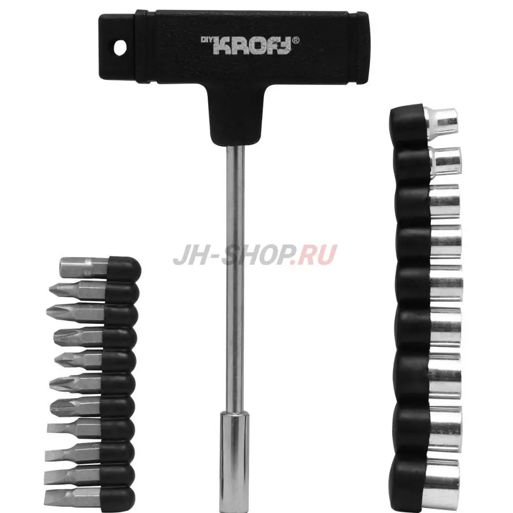 Набор охватывает наиболее полный комплект бит и головок, применяемых в быту. T-образная рукоятка позволяет снизить нагрузку на ладонь, в то время как адаптер для бит делает замену и установку быстрой и легкой для пользователя. Специальные пластиковые держатели позволяют удобно хранить головки и биты.