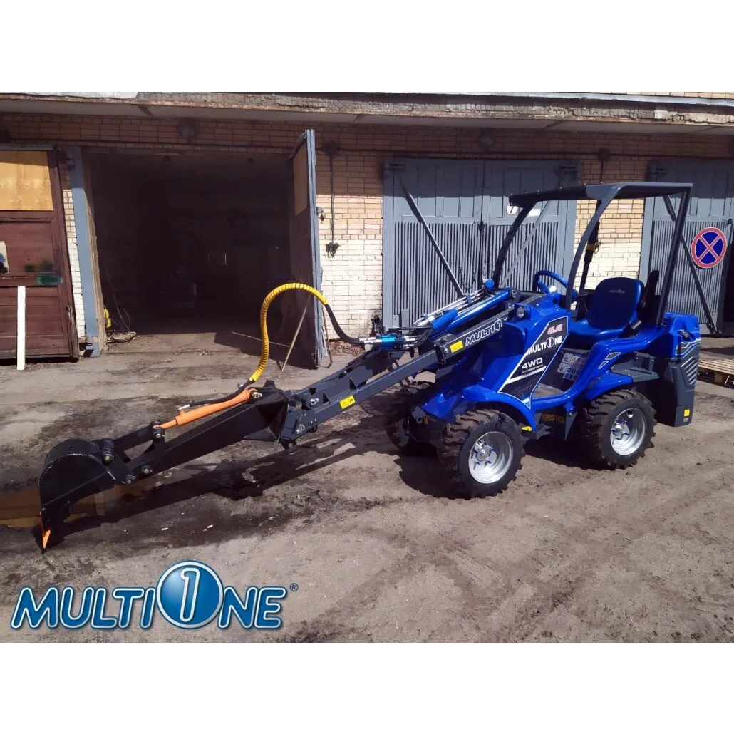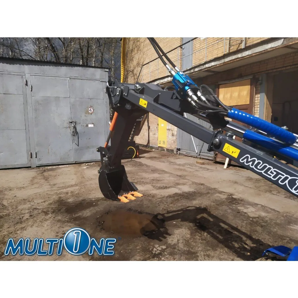 Экскаваторная рукоять MultiOne — это эффективное решение для несложных земляных работ, когда необходимая максимальная глубина копания не превышает 1200 мм или 1500 мм, а копка — не повседневная работа. Рукоять монтируется непосредственно на плиту быстрого соединения погрузчика и контролируется с помощью рычага управления вспомогательной гидравликой или кнопок джойстика. Сбрасывание на сторону происходит путем поворота рулевого колеса MultiOne. Также доступна модель с гидравлическим поворотом на 90 ° (45 ° влево и 45 ° вправо) для облегчения работы. Доступны три модели ковшей, и для самых труднопроходимых участков можно дополнительно установить зубья.
