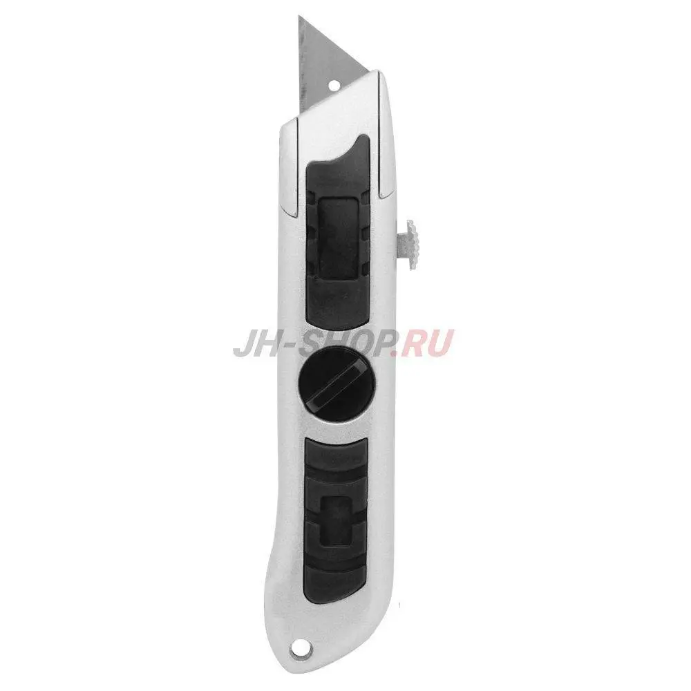Корпус ножа из алюминия с антикоррозийным и цинковым покрытиями предохраняет инструмент от порчи во время работы на открытом воздухе и падения с высоты 1-2 этажей, прямых ударов молотком.