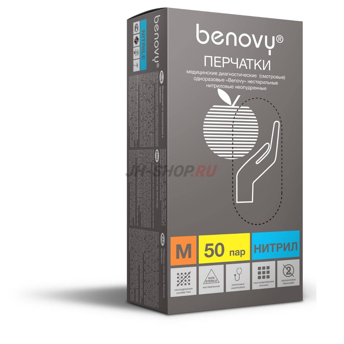 Перчатки медицинские диагностические (смотровые) одноразовые нестерильные "BENOVY" нитриловые текстурированные на пальцах голубого цвета предназначены для одноразового использования в качестве защитного барьера при ношении на руках медицинского работника во время осмотра/лечения пациента или для других санитарных целей, используются в основном как двусторонний барьер для защиты пациента и медперсонала от различных загрязнений.