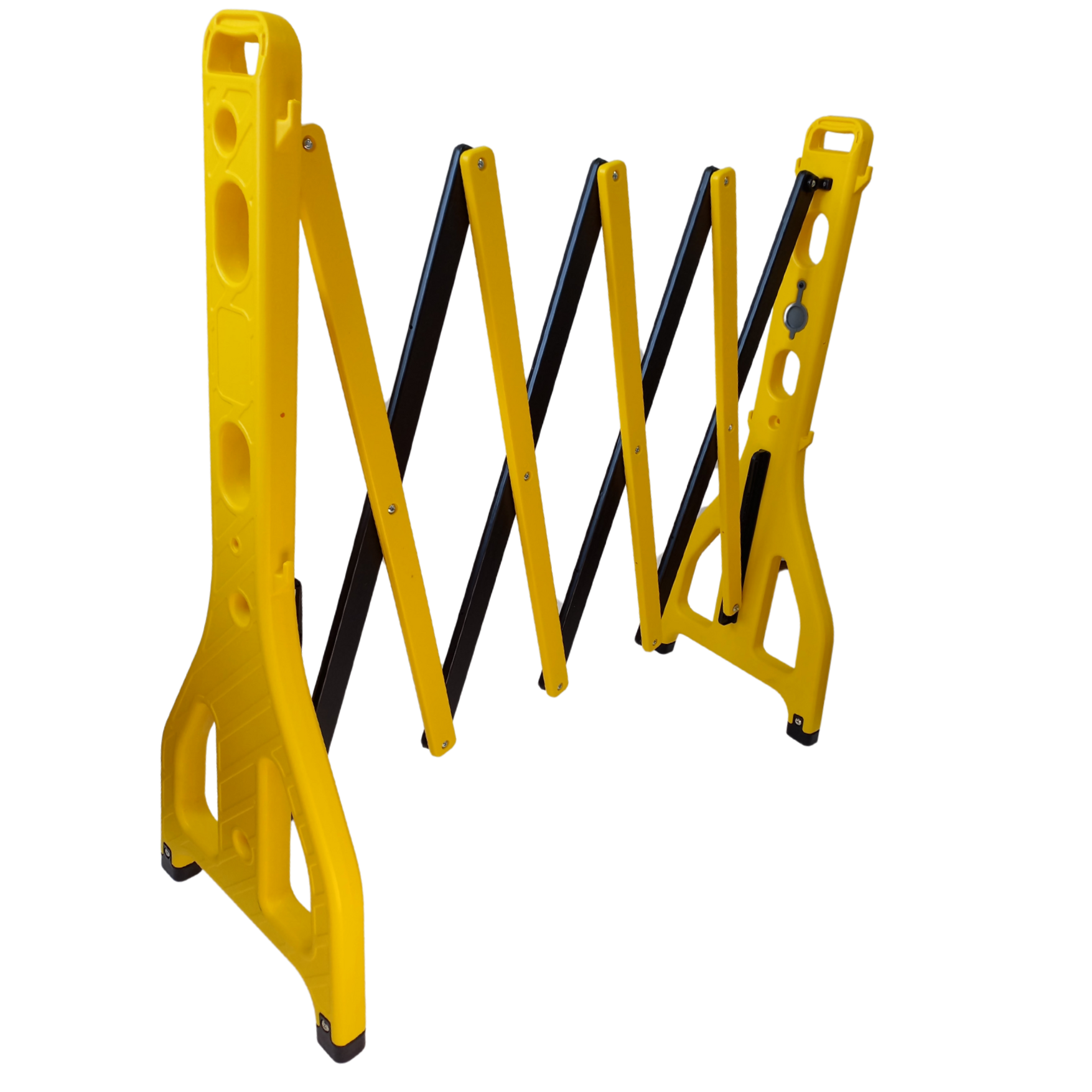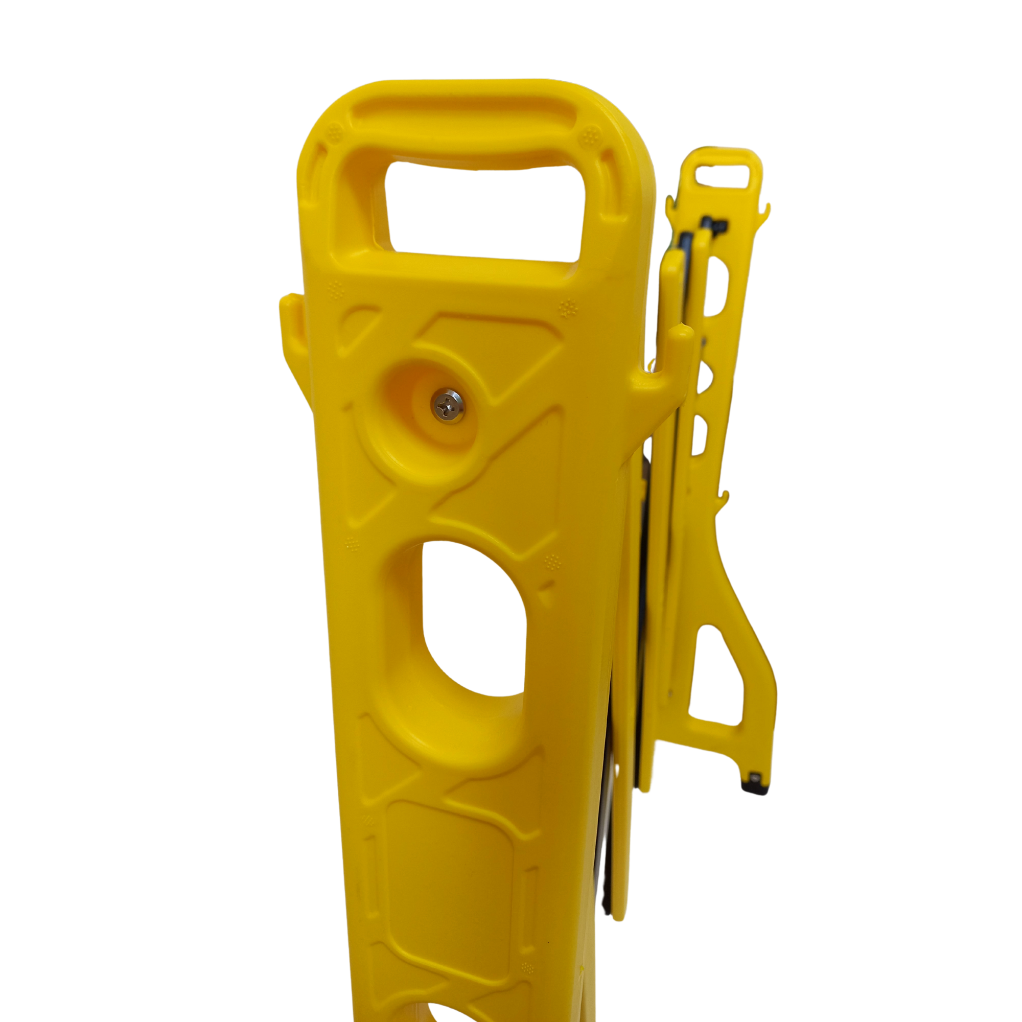 Переносной раздвижной барьер «Гармошка» выполнен из высококачественного прочного пластика яркого жёлтого цвета, хорошо видимого при ограниченном освещении, устойчивого к атмосферным воздействиям, высоким и низким температурам, ультрафиолетовому излучению и воздействию зимних, дорожных, химических реагентов. Простая, легкая конструкция, удобная в установке.