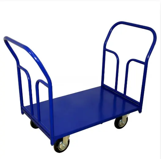 Тележка металлическая платформенная с двумя ручками (ТПД) для транспортировки всевозможных товаров и грузов. Наличие двух ручек позволяет эксплуатировать тележку по принципу "тяни - толкай", что особенно удобно в ограниченном пространстве и узких проходах. Каркас платформы изготавливается из трубы Ø 30 мм., настил металлический лист толщиной 1,0 мм. Ручки изготовлены из трубы Ø 30мм., заполнение труба Ø 25 мм.