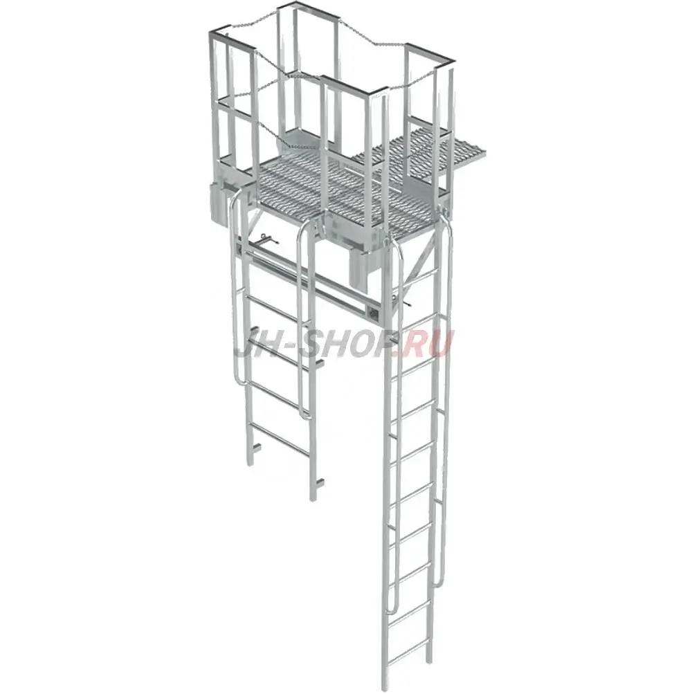 Площадка представляет собой сварную конструкцию из основной площадки, откидного трапа, внутренней и наружной лестниц.