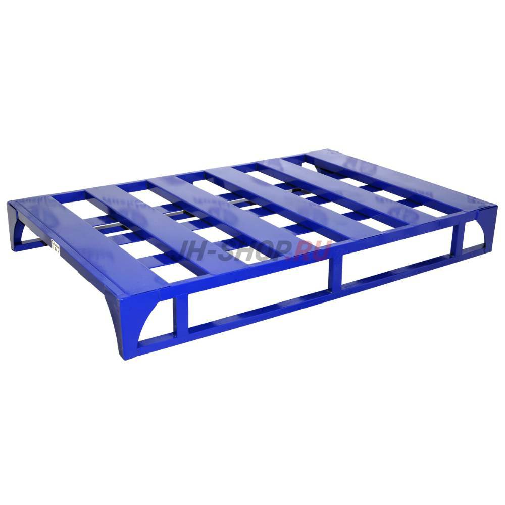 Паллета металлическая каркасный, облегченный. Каркас паллеты выполнен из профильной трубы прямоугольного сечения. Настил каркасный выполнен из специального профиля 106х30. Расчетная грузоподъемность паллеты 500 кг распределенной нагрузки.