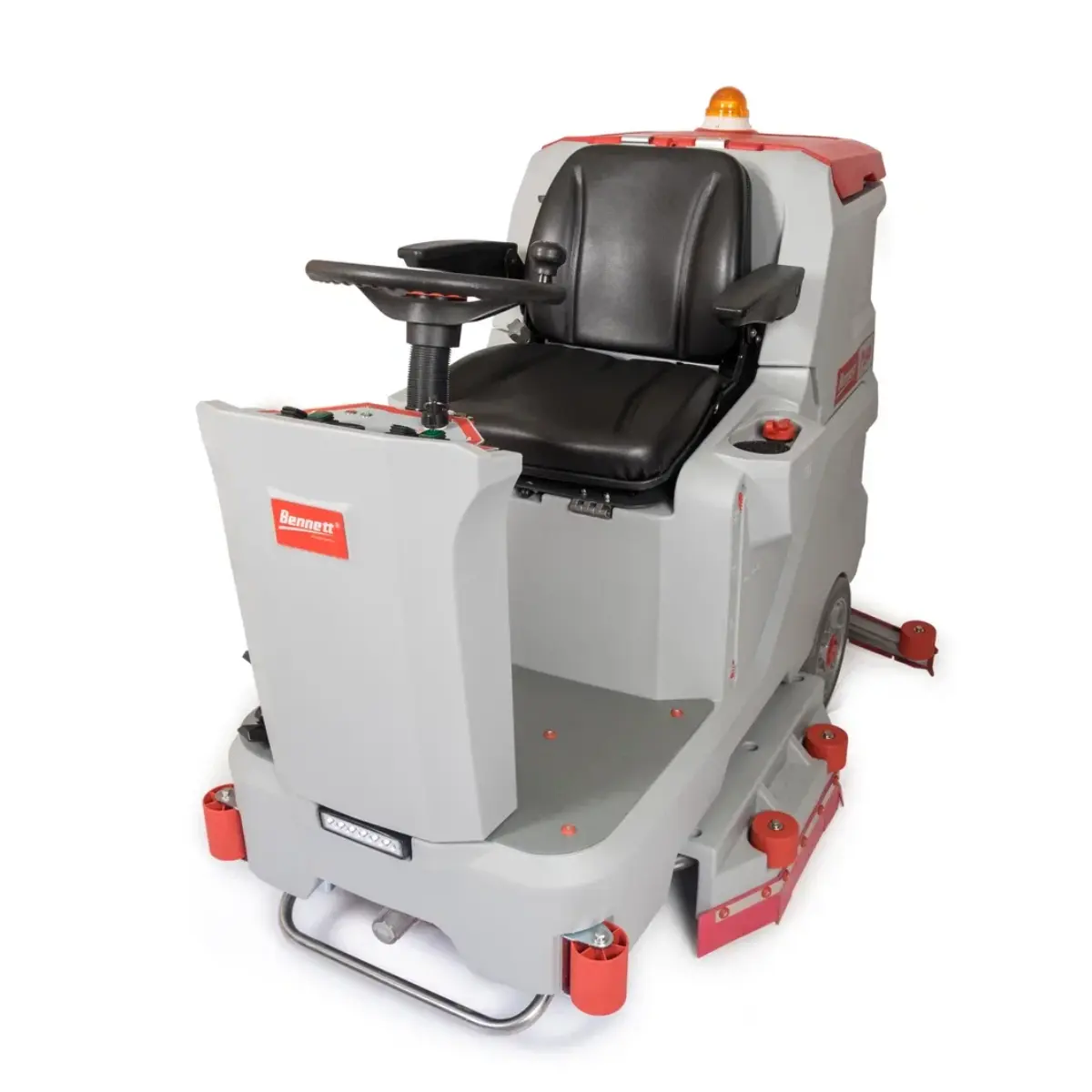 Bennett Patrol P150 – поломоечная машина с сиденьем для оператора оснащена тяговым приводом на переднее колесо, двумя дисковыми щетками с общей рабочей шириной 860 мм. Оптимальное сочетание размеров поломоечной машины и ёмкости АКБ позволяет максимально эффективно использовать её при работе. Производительность 6000 м2/ч и до 6 часов работы от одного заряда аккумуляторов дают возможность оператору убирать до 15 000 м2 за смену.