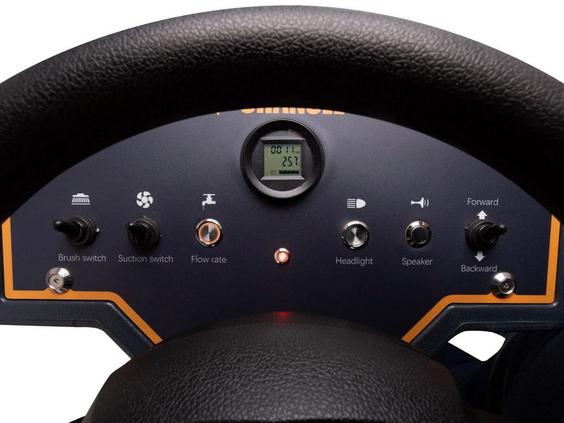 Эргономичное рулевое колесо, интеллектуальная панель управления и удобные ручки подъёма щётки и ракеля делают управление интуитивно понятным и комфортным. Система оповещения об уровне сточных вод и большие резервуары для чистой и грязной воды повышают безопасность и эффективность уборки.