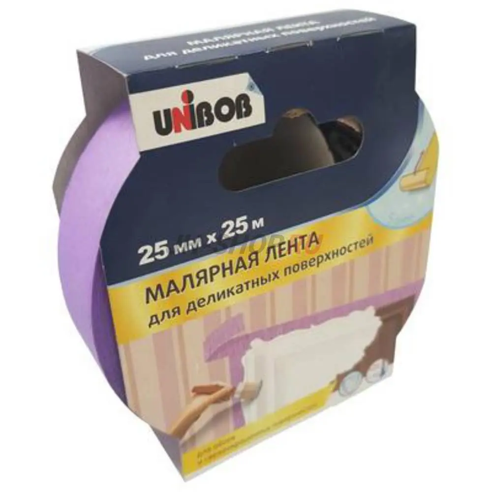 Профессиональная малярная лента UNIBOB для деликатных поверхностей 25мм х 25м (фиолетовая)
